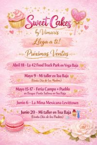 Comenzé en la Repostería en el 2011 con la idea de crear los bizcochos de los cumpleaños de mis hijos. Al ser el bizcocho de agrado para mis invitados, decido publicar en facebook que estaba haciendo bizcochos y comenzaron a ordenarme. De ahi surge lo que hoy día es Sweet Cakes by Vimaris. Llevo 14 años dedicándome a lo que me apasiona, me encanta hacer y lo que se convirtió en mi trabajo Full Time, aunque poseo un Bachillerato en Sistemas de Oficina, al tener niños pequeños se me hacía difícil combinar un trabajo de 40 horas semanales con la Repostería. Estoy localizada en el pueblo de Toa Baja y realizo bizcochos para toda ocasión. Desde lo más sencillo, hasta lo más elaborado. Un placer poder servirles!